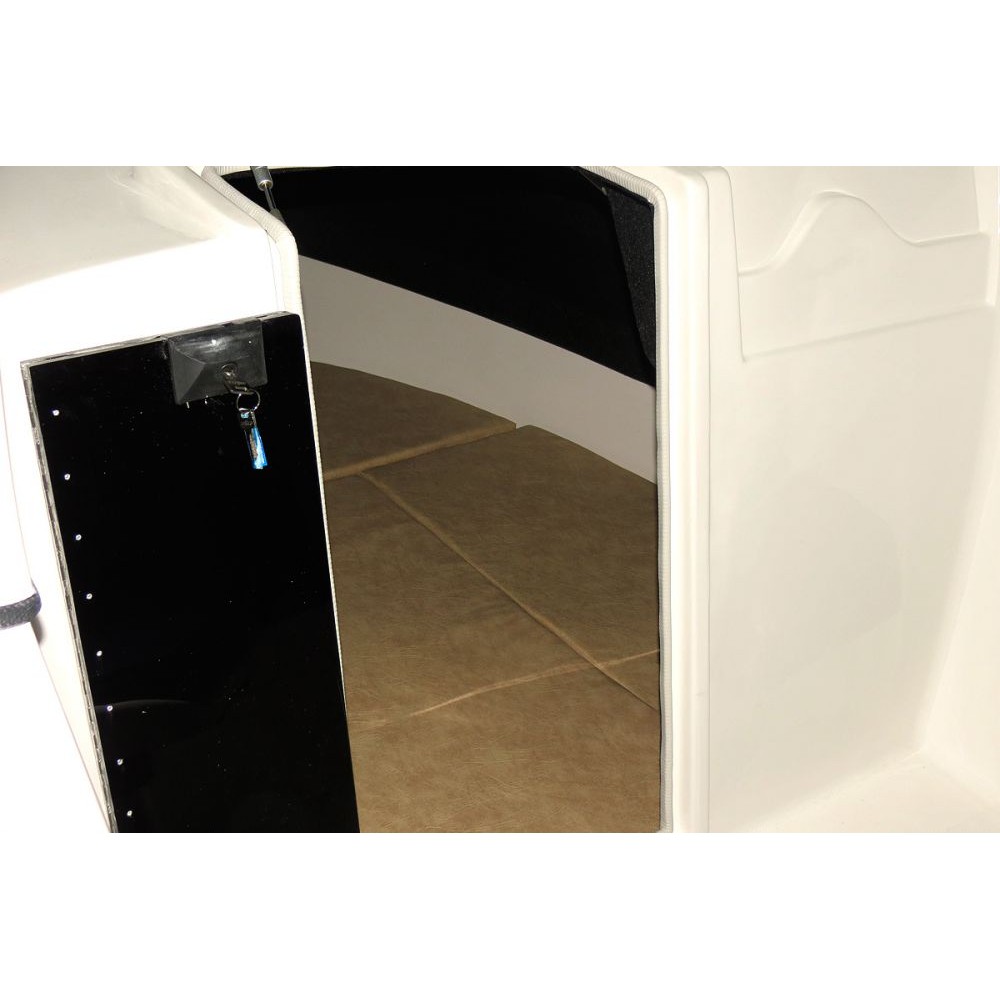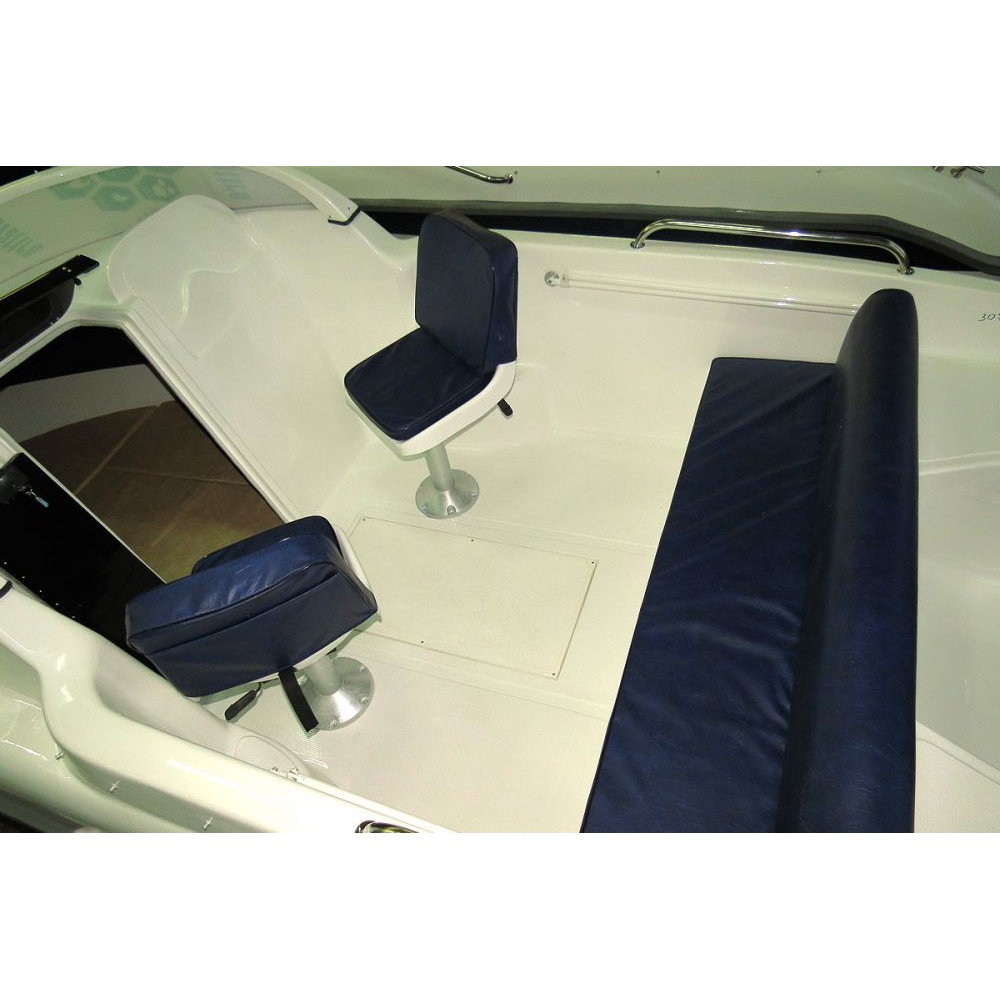 - Корпус и палуба изготовлены методом контактного формования из стеклопластика на основе полиэфирной смолы, армированной стекломатериалами. Это обеспечивает легкость, прочность и долговечность.