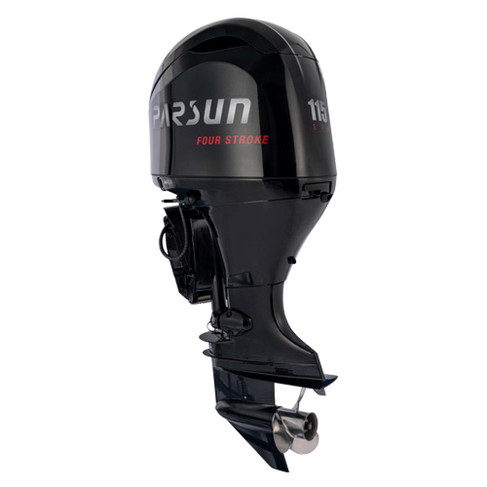 Самый мощный (115 л. с.) лодочный мотор Parsun. Создан для крупных лодок и катеров. Оснащен ультрадлинной ногой (635 мм), поэтому подходит для плавания в море, по большим озерам и рекам. Запускается электростартером, управляется дистанционным пультом. Мотор тяжелый (185 кг) — для его перевозки нужна тележка.