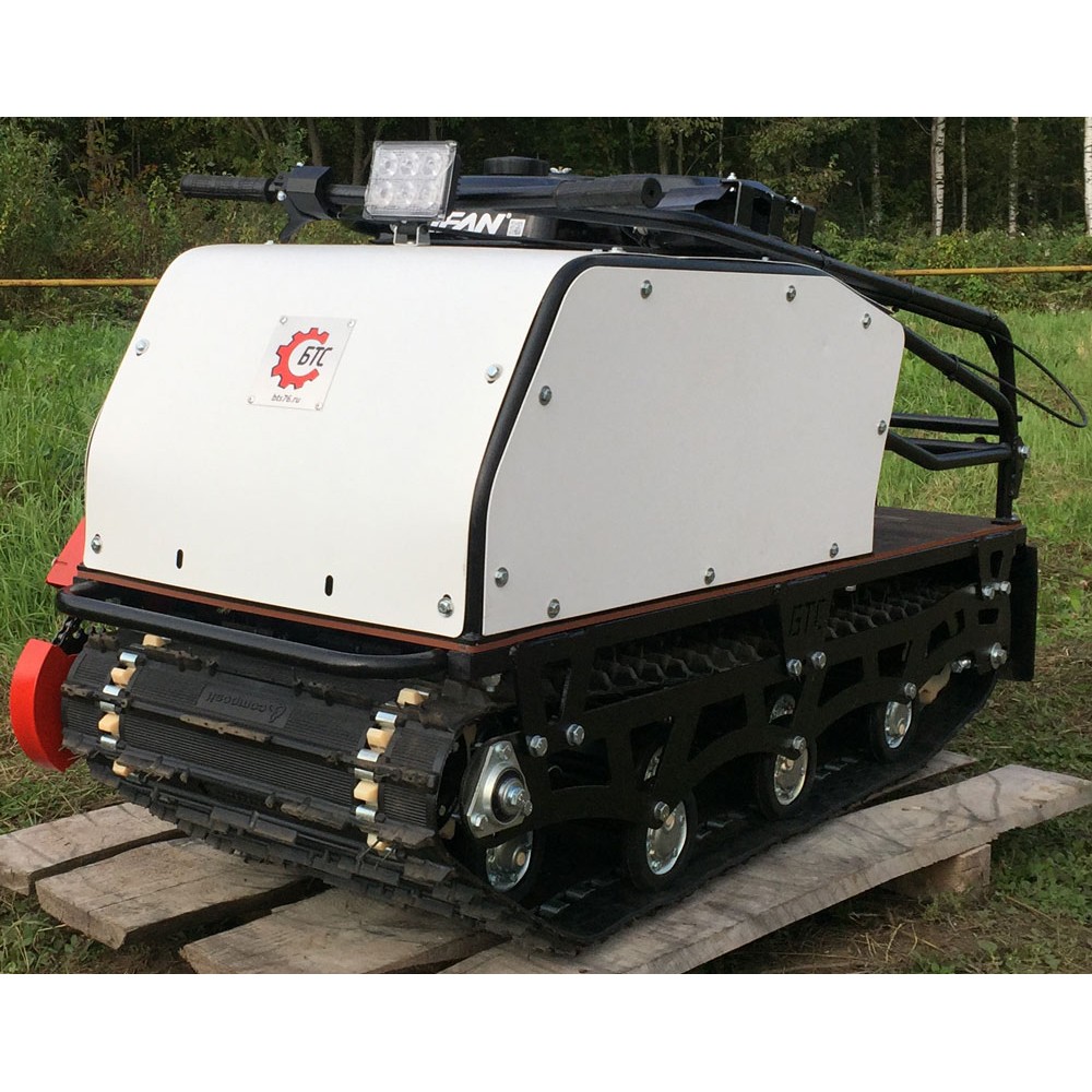 Мотобуксировщик БТС Стандарт 500 15 л.с. – это длиннобазовая модель с гусеницей шириной 500 мм. Увеличенный размер гусеницы уменьшает давление на поверхность и позволяет двигателю максимально использовать свою мощность, не зарываясь в снег.