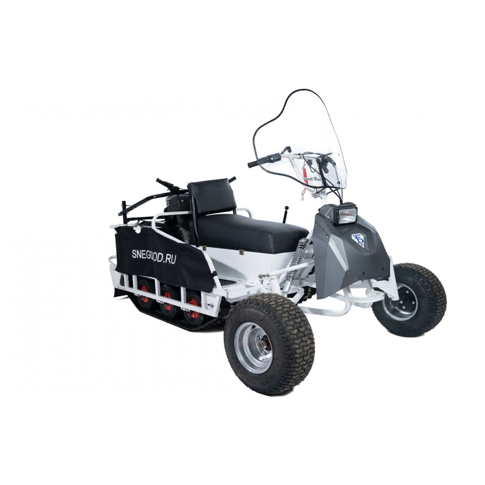 Версия PRO комлектуется двухцилиндровым снегоходным двигателем мощностью 24 л.с, электрозапуском, коробкой реверса, тормозом, а также подогревом ручек руля и курка газа.