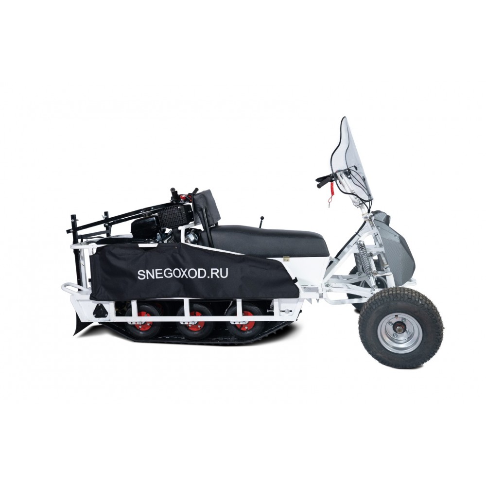 Мотобуксировщик Бурлак-М Экспедитор RP с задним расположением двигателя на усиленной пневмоподвеске. Две гусеницы шириной 38см каждая обеспечивают высокую проходимость по любым видам покрытий. Подвеска унифицирована: зимой рекомендуется использование снегоходных тележек (катковая подвеска), летом и в межсезонье идеально работает пневмоподвеска (рекомендуется использование только при плюсовых температурах!). В комплекте идет колесный модуль. Экспедитор RP может эксплуатироваться как в сборе с колесным модулем, так и в сцепке с колесным прицепом.