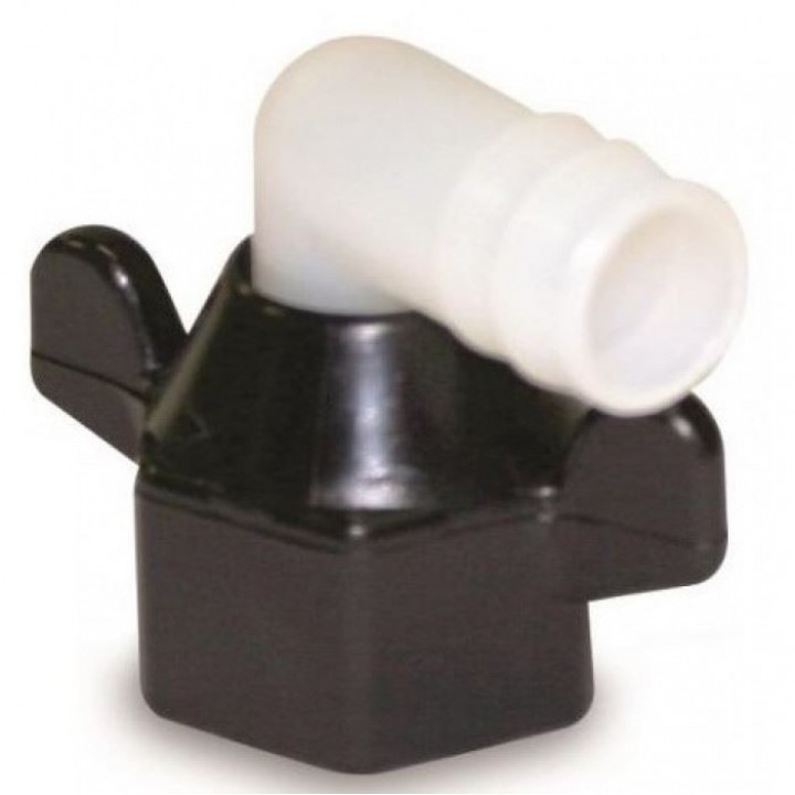 Переходник угловой с резьбовым соединением 1/2'-14NPT на шланг 13 мм. Изготовлен из нейлона.