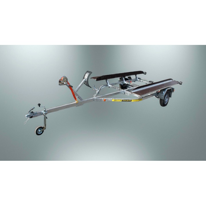 Предназначен для перевозки лодок типа КАТАМАРАН длиной до 5,4 метров по всем видам дорог, на которых допускается эксплуатация легковых автомобилей. Рама, ось прицепа полностью оцинкованные методом горячего цинкования. Крылья выполнены из оцинкованной стали. Прицеп одноосный, без тормозов. Подвеска колес (R13) на двух полуэллиптических рессорах с гидравлическими амортизаторами. Направляющие полозы для размещения лодок типа КАТАМАРАН. Для обеспечения оптимальной нагрузки на сцепной шар, подвеска может быть смещена вперед или назад в зависимости от положения центра тяжести перевозимого груза. Оборудован съёмным задним "фартуком" для предотвращения контакта оптики с водой, при спуске на воду и подъёме лодки из воды. Сцепное уст-во шарового типа, под шар D 50 мм. Полная масса 750 кг. Грузоподъёмность 475 кг. Фактическая до 700 кг. Габаритные размеры, мм - длина 5708; - ширина 2400; - высота 1255. Опорное колесо, ручная лебёдка и кронштейн для "запаски" в стандартной комплектации. Опции: запасное колесо. Не требуется категория "Е".